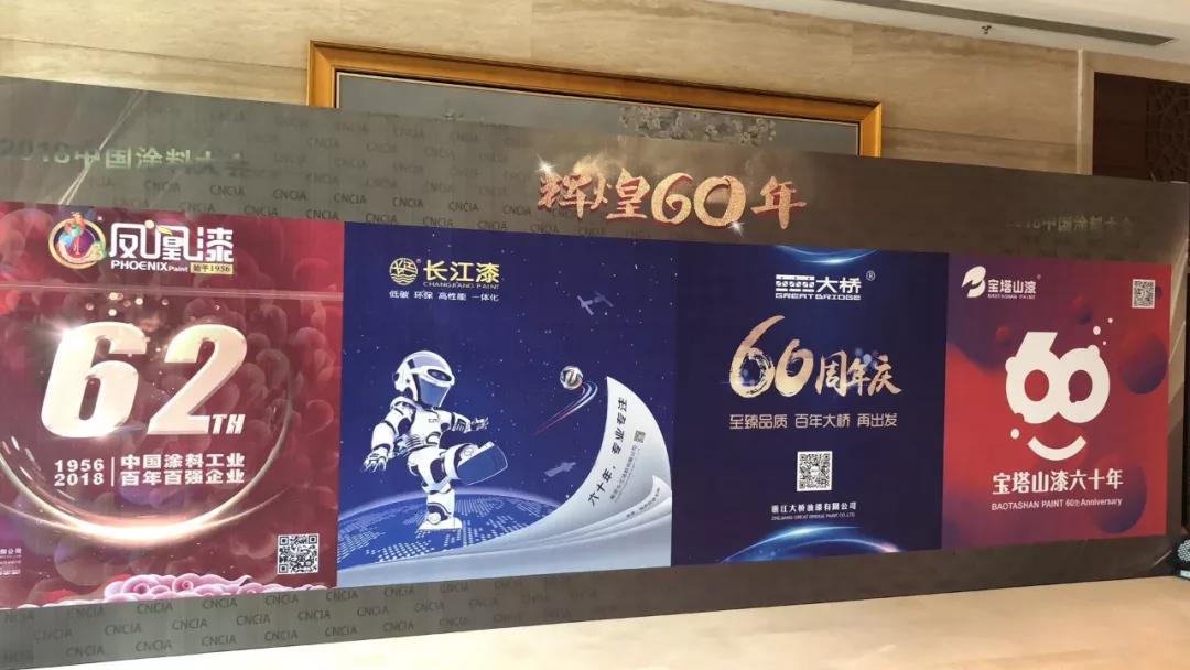 這次大會規模宏大,有來自全國塗料行業1400名相關企業代表參加會議,會上公司還與長江、寶塔山等同樣建廠60周年的四家企業進行了展板展示和專題片播放,極大的提高了企業的知名度和影響力。